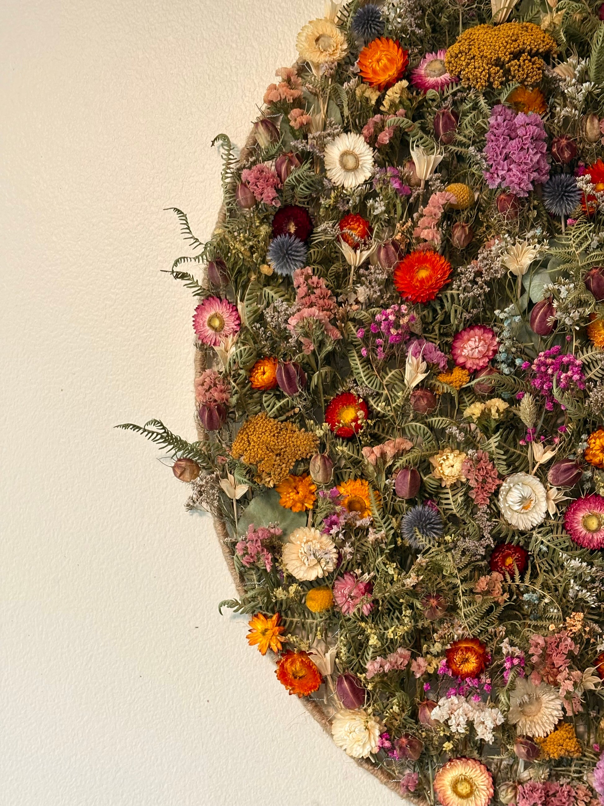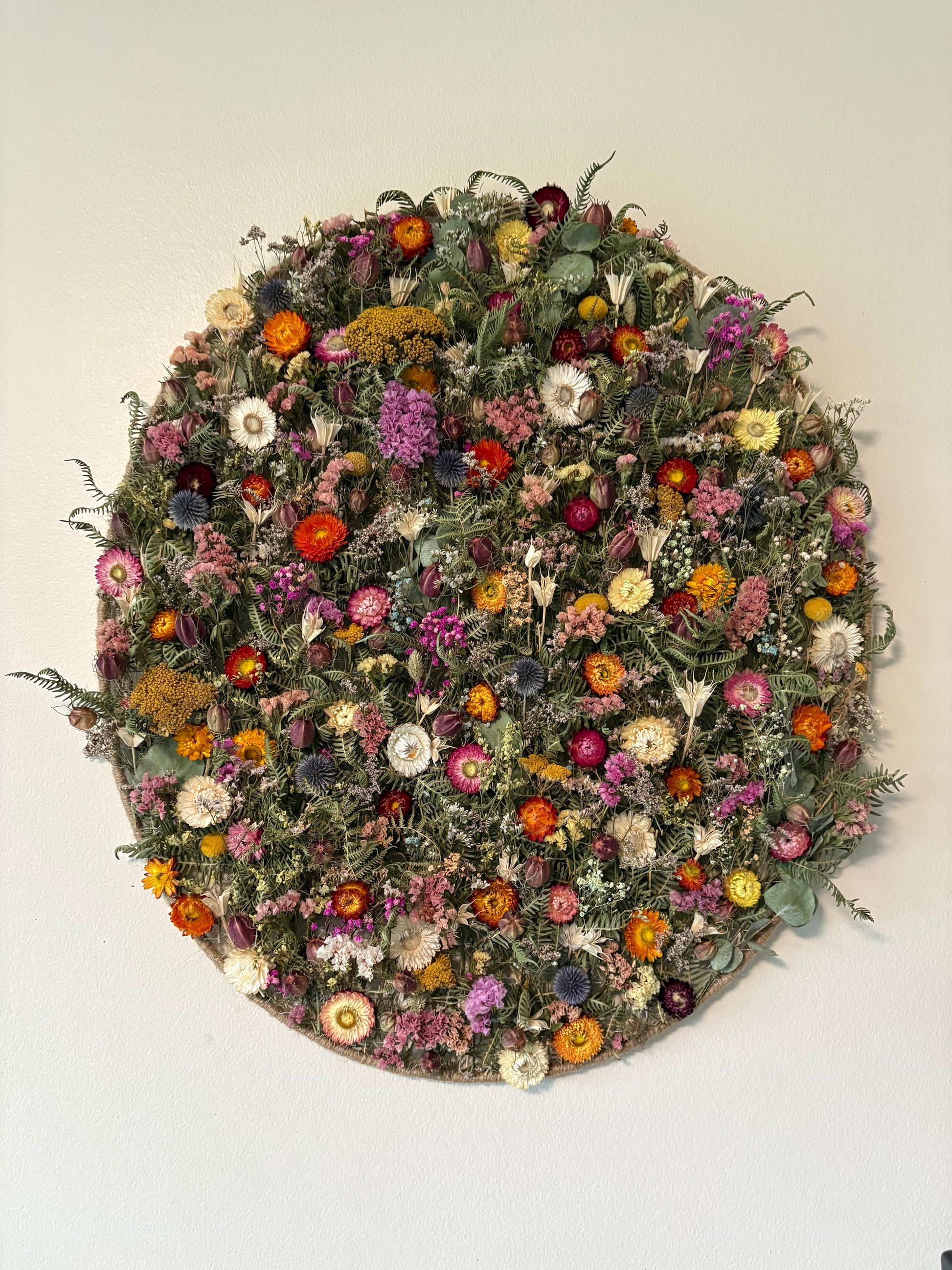 Apportez une touche de nature et de poésie à votre intérieur avec ce cadre ovale végétal unique. Inspiré par l'immensité des prairies en fleurs, il mêle harmonieusement textures et couleurs pour créer une véritable fenêtre ouverte sur la nature.